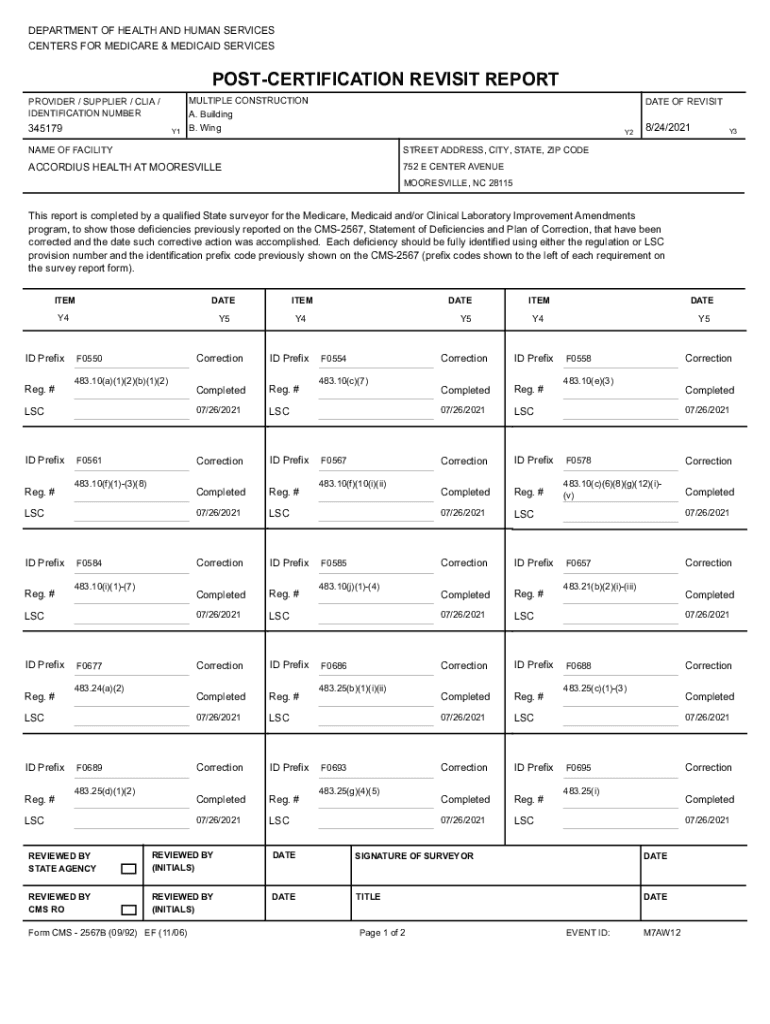 DEPARTMENT OF HEALTH AND HUMAN SERVICES CENTERS FOR MEDICARE & MEDICAID SERVICESPOSTCERTIFICATION REVISIT REPORT PROVIDER / SUPPLIER / CIA / IDENTIFICATION NUMBER345179Y1MULTIPLE CONSTRUCTION A. Building