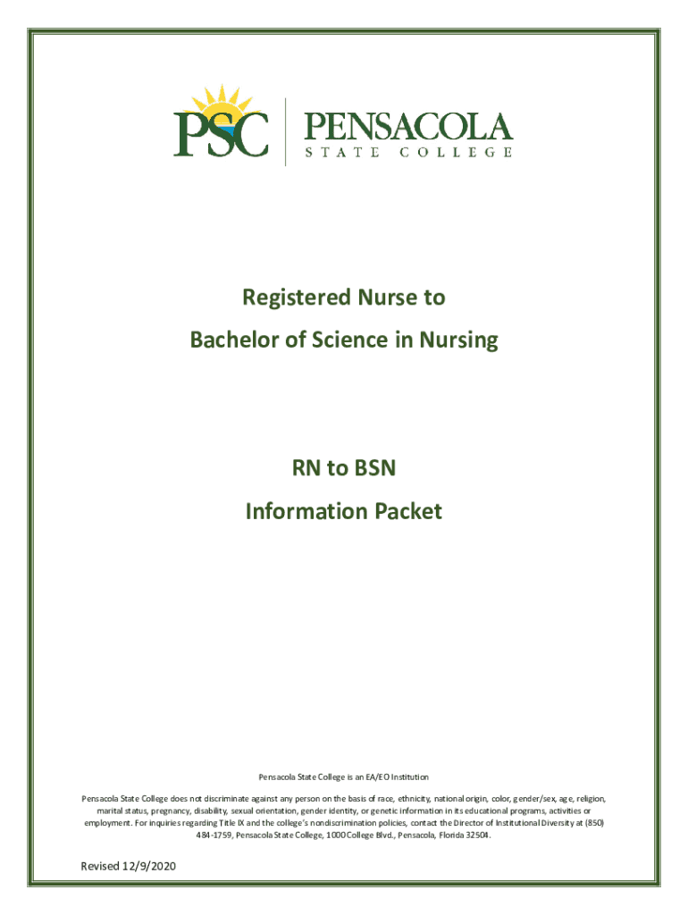 Registered Nurse to Bachelor of Science in Nursing RN to BSN Information Packet Pensacola State College is an EA/EO Institution Pensacola State College does not discriminate against any person on