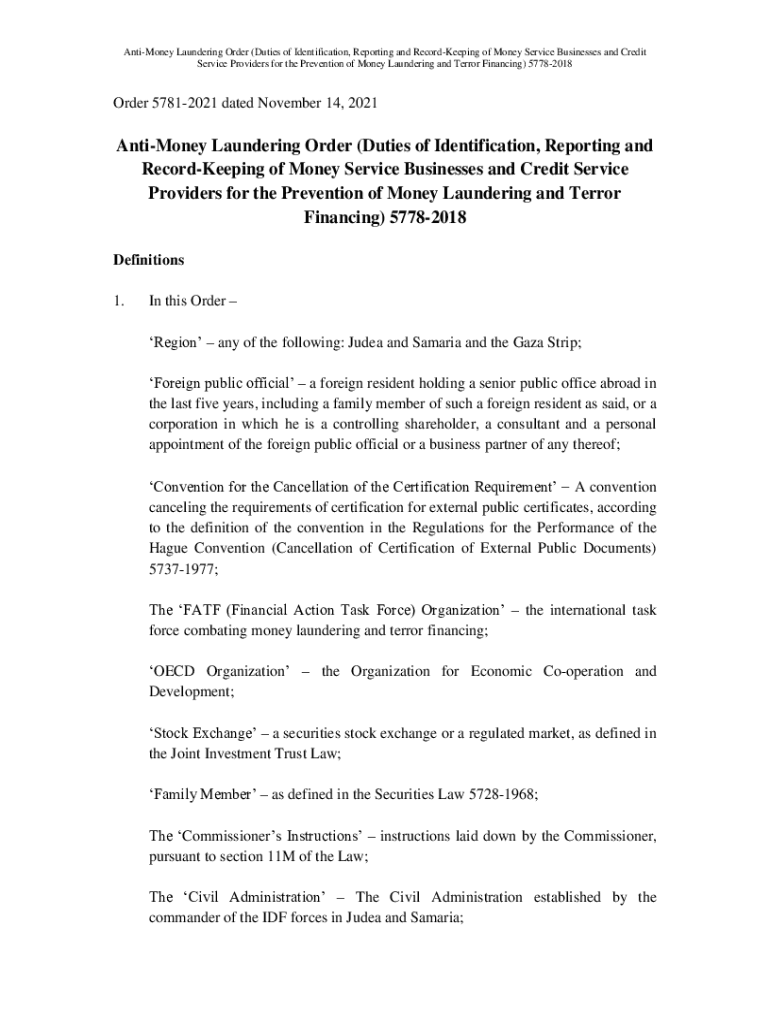 Get the free Anti-Money Laundering Order (Duties of Identification ... - Gov.il