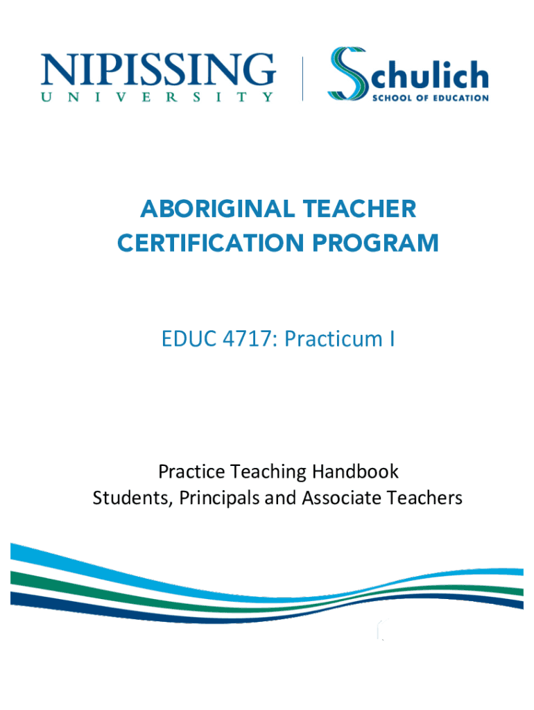 ABORIGINAL TEACHER CERTIFICATION PROGRAMMED 4717: Practicum Practice Teaching HandbookStudents, Principals and Associate TeachersTable of Contented 4717 PRACTICUM I ..................................................................................................................