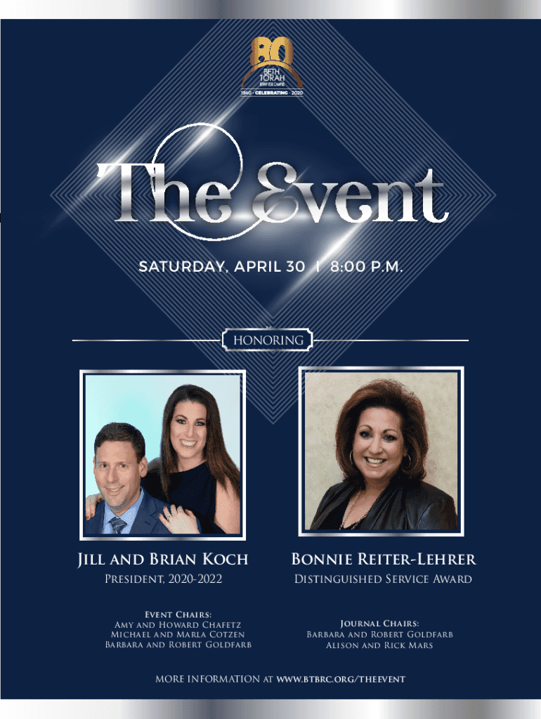 SATURDAY, APRIL 30 I 8:00 P.M.HONORING Jill and Brian Koch Bonnie ReiterLehrerPresident, 20202022Distinguished Service Awardee Chairs: Amy and Howard Chavez Michael and Marla Cozen Barbara and Robert