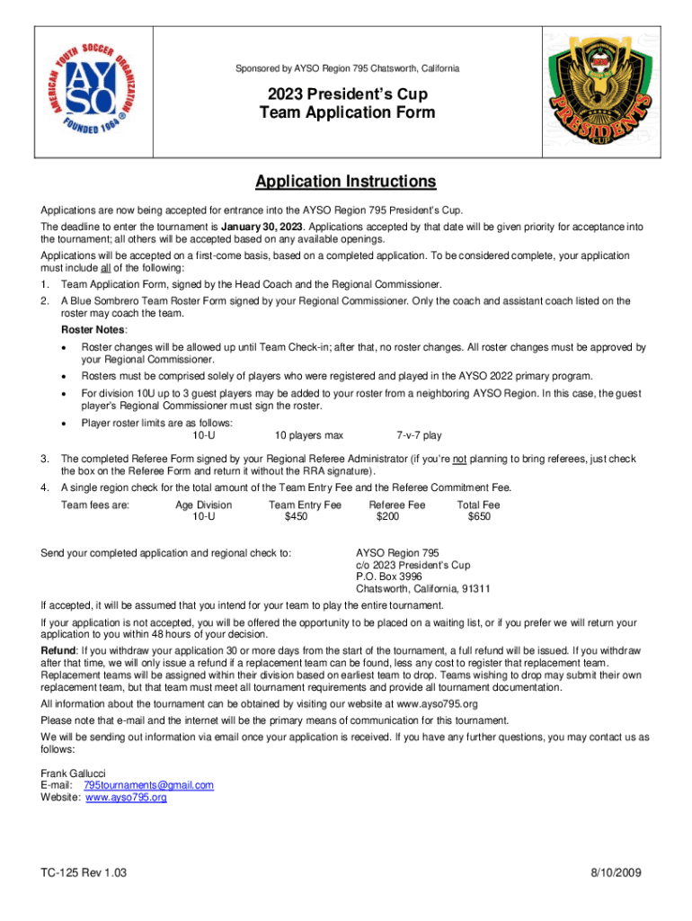 Sponsored by ALSO Region 795 Chats worth, California2023 Presidents Cup Team Application Formalization Instructions Applications are now being accepted for entrance into the ALSO Region 795 Presidents
