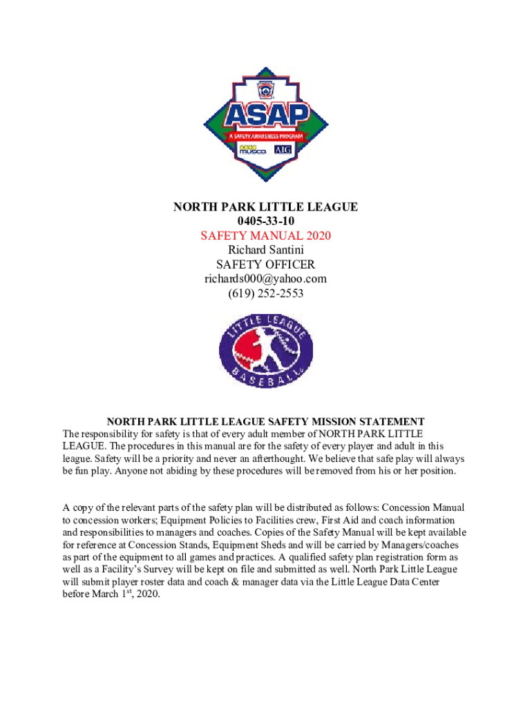 Get the free north park little league 0405-33-10 - safety manual 2020