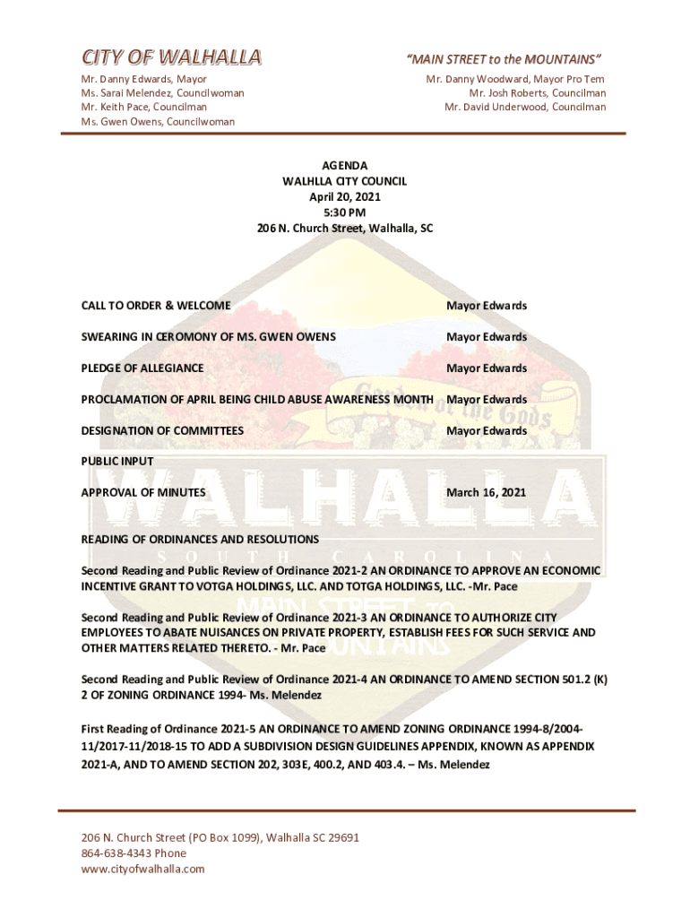 MAIN STREET to the MOUNTAINS Mr. Danny Edwards, Mayor Ms. Sarah Melendez, Councilwoman Mr. Keith Pace, Councilman Ms. Gwen Owens, Councilwoman Mr. Danny Woodward, Mayor Pro Tem Mr. Josh Roberts, Councilman