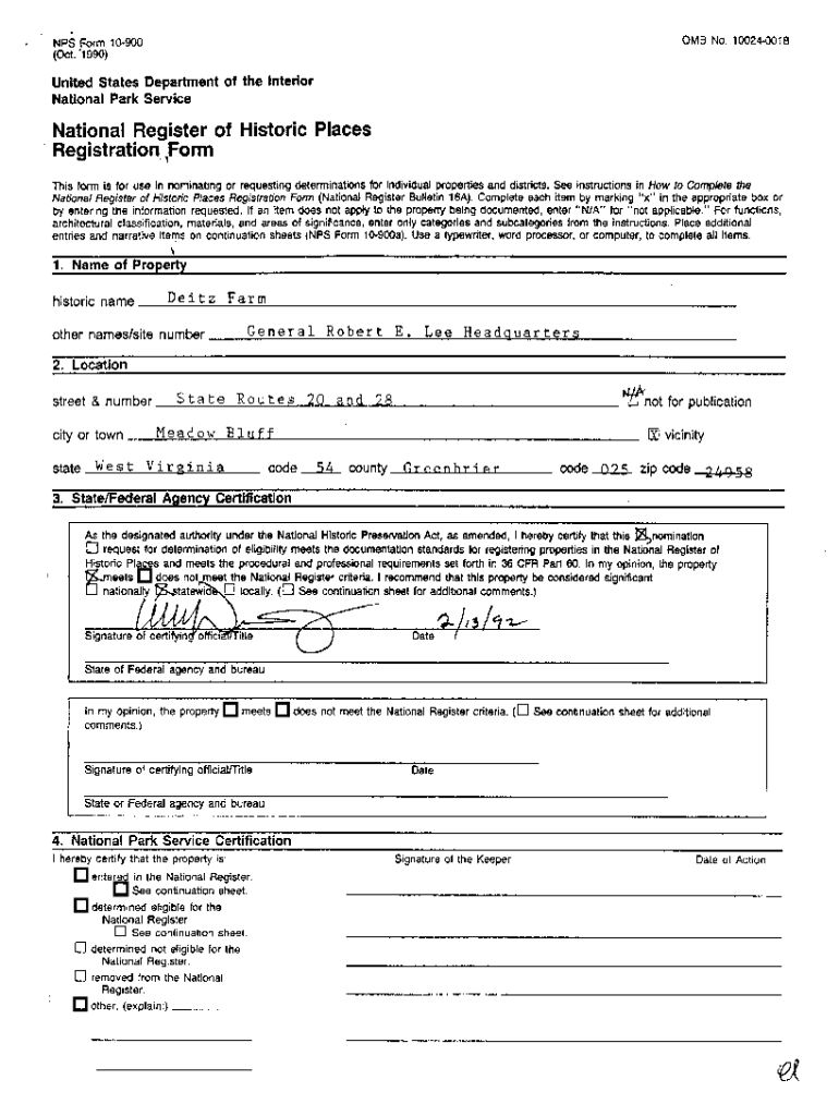 NPS Form 10900 (013. \'1 990)United States Department of the Interior National Park ServiceNational Register of Historic Places Registration, Form This form is for use in nominating or requesting