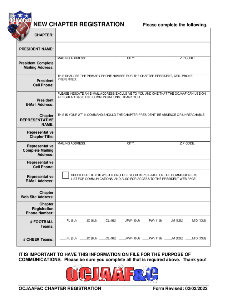 OC Junior All American Football Conference & Cheered CHAPTER MEMBER APPLICATIONAPPLICATION OVERVIEW & CHECKLIST 1.2. Verbal or written notice to the OCJAAF&C COMMISSIONER of your intent to join NCAA.