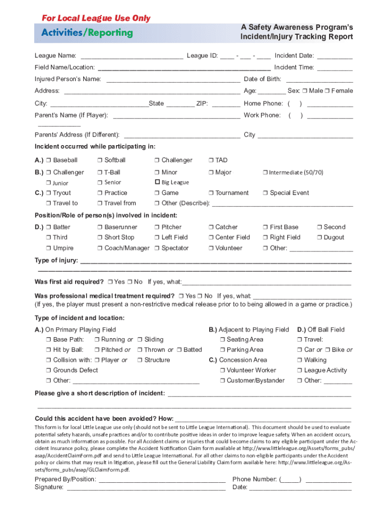 The information that must be reported on Alexandria Potomac Little League forms typically includes the child's name, age, contact information, medical history, and parental consent.