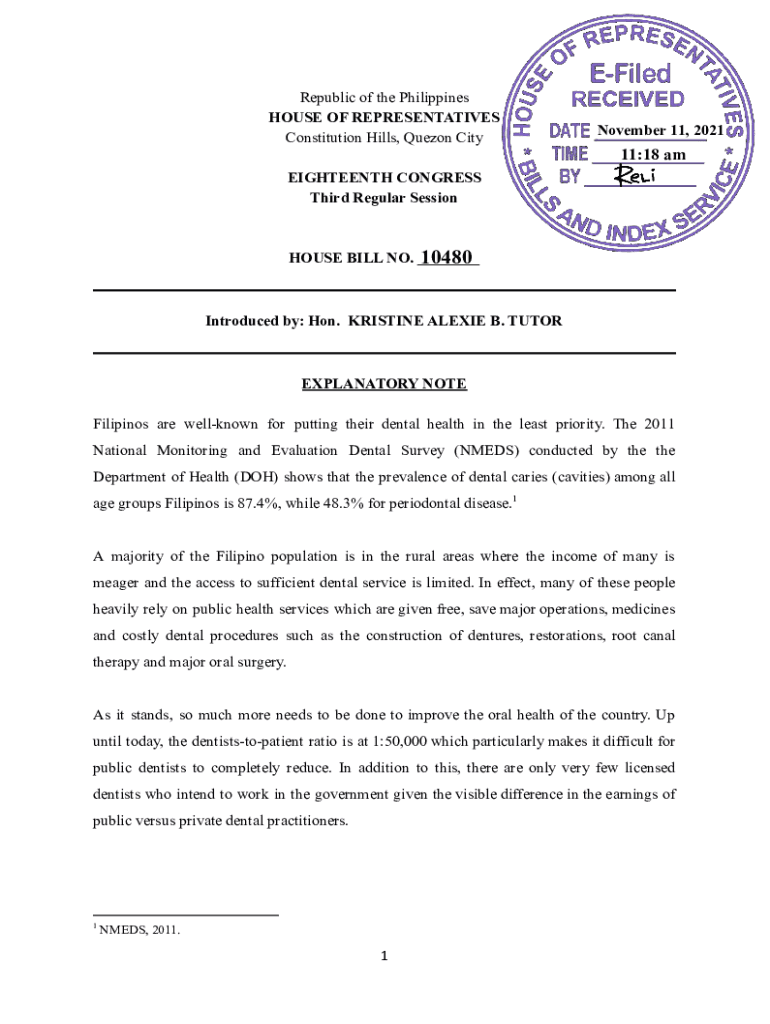 Republic of the Philippines HOUSE OF REPRESENTATIVES Constitution Hills, Quezon City November 11, 202111:18 eighteenth CONGRESS Third Regular SessionHOUSE BILL NO. ___ 10480Introduced by: Hon. KRISTINE