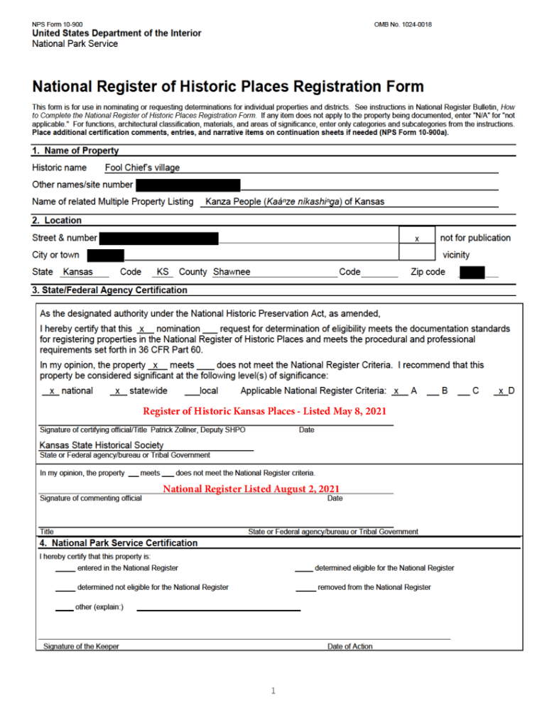 Register of Historic Kansas Places Listed May 8, 2021National Register Listed August 2, 2021United States Department of the Interior