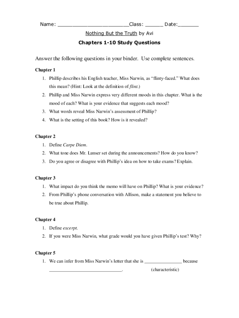Get the free Nothing But the Truth Intro to Chapter 7 Answer Key