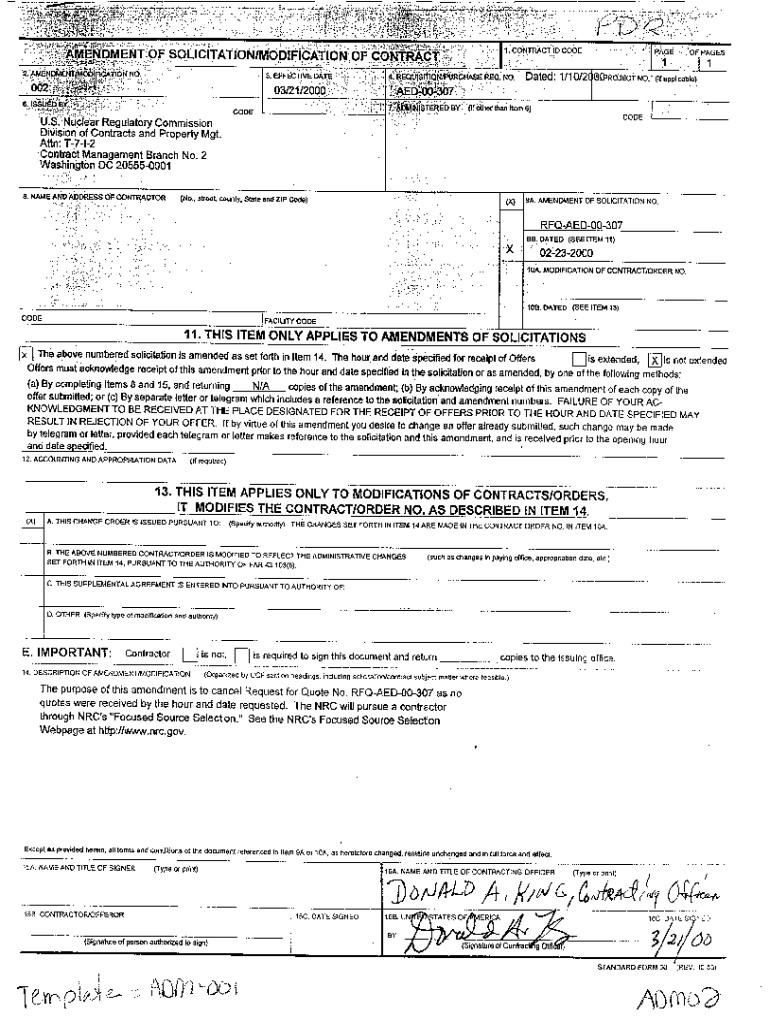 . .,.* :47DMEN T.:.\'payment.OF SOLICITATIONIMODIFiCATIoN Ofcom A6kCATION NO.3. EFFECTIVE LATE.\”403121/2000. U.S.\' NuCODE72,ear Regulatory CommissionDivision of Contracts and Property Met. Attn: