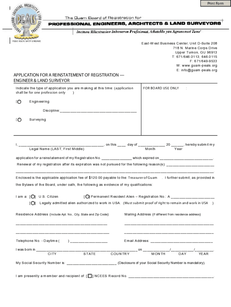 Get the free Guam PEALSGuam Board of Registration for Professional ...