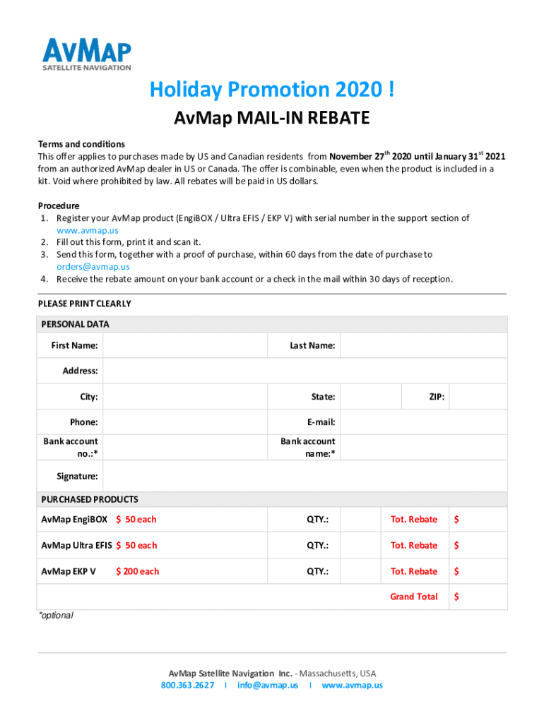 Holiday Promotion 2020 ! AMAP MAILING REBATE Terms and conditions This offer applies to purchases made by US and Canadian residents from November 27th 2020 until January 31st 2021 from an authorized