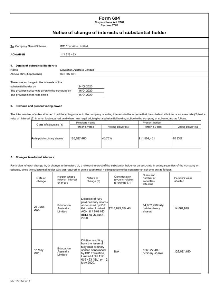 Get the free IDP Substantial Shareholder Notice - Education Australia Limited - ASIC Form 604 - 2...
