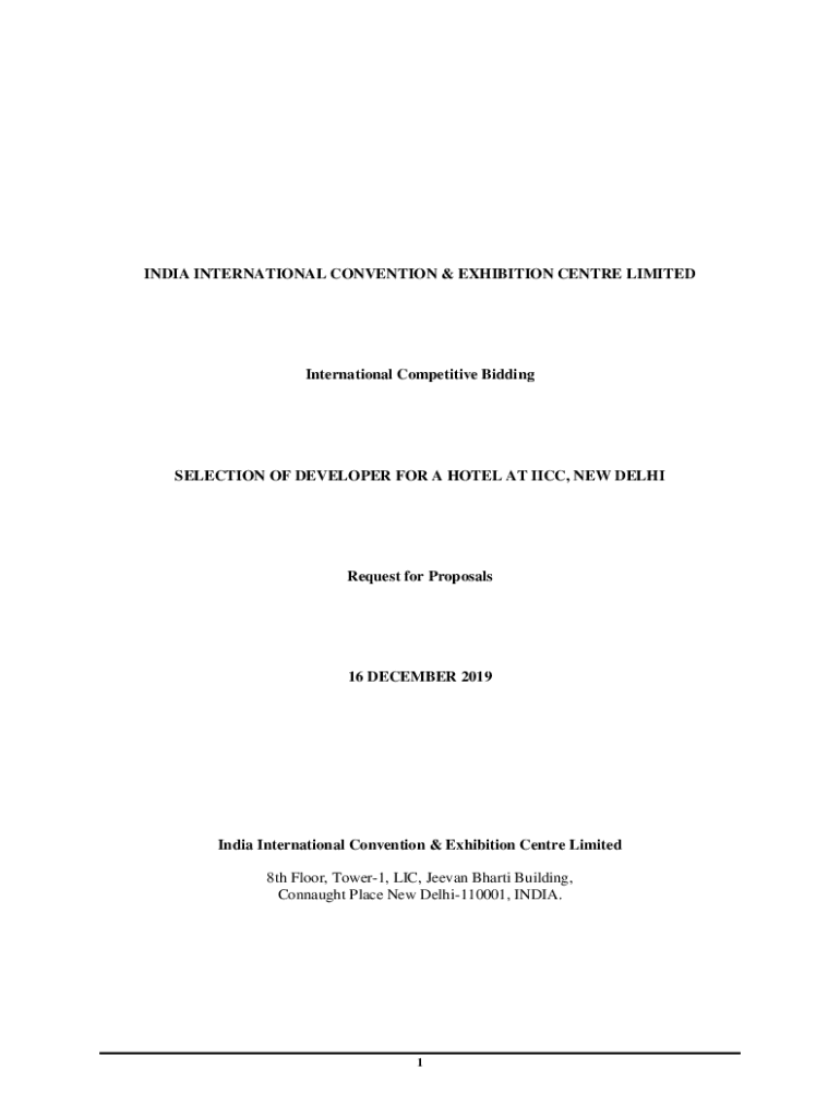 INDIA INTERNATIONAL CONVENTION & EXHIBITION Center LIMITEDInternational Competitive BiddingSELECTION OF DEVELOPER FOR A HOTEL AT IPCC, NEW DELHIRequest for Proposals16 DECEMBER 2019India International