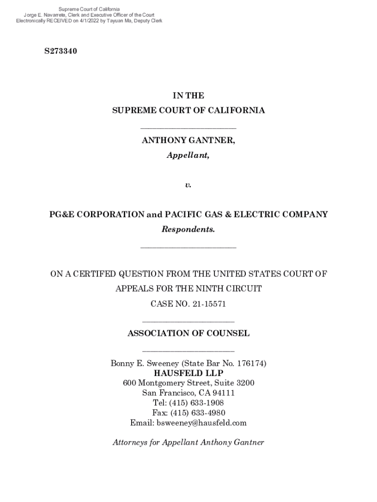 Get the free ANTHONY GANTNER, Appellant, v. PG&E ...