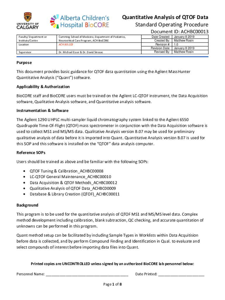 Get the free Qualitative Analysis of QTOF Data Standard Operating ...
