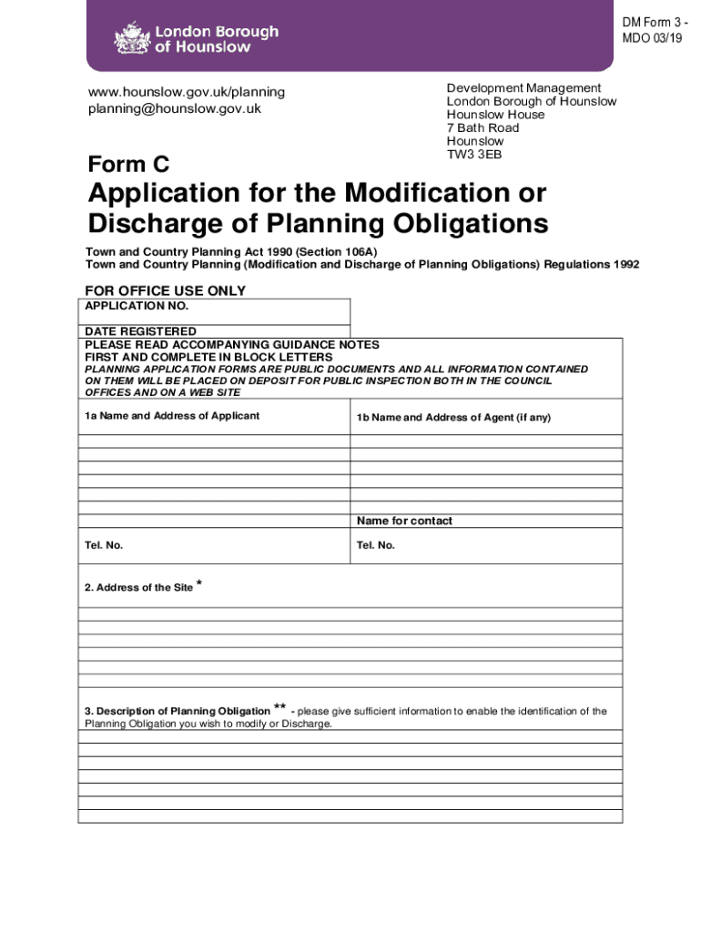 DM Form 3 DO 03/19 Development Management London Borough of Hounslow House 7 Bath Road Hounslow TW3 3EBwww.hounslow.gov.uk/planning planning@hounslow.gov.ukForm Application for the Modification or