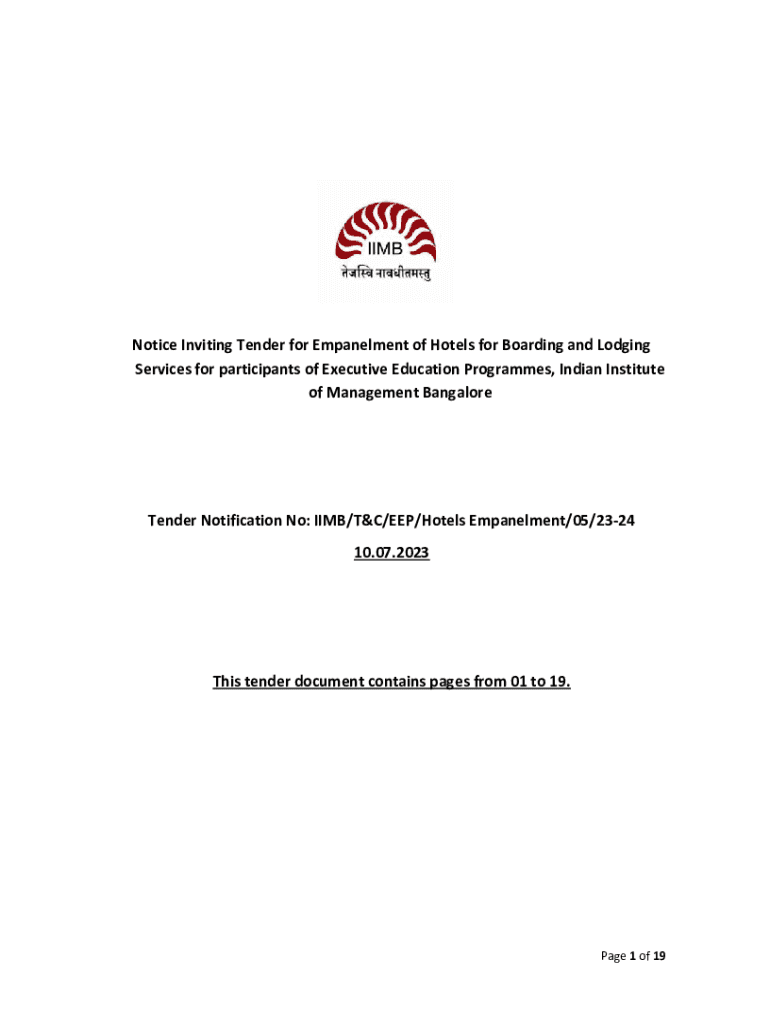 Get the free Notice Inviting Tender for Empanelment of Hotels for ...