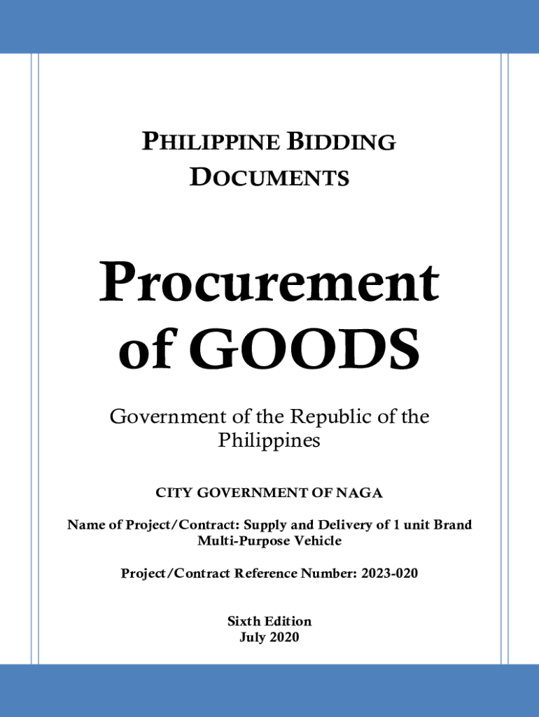 PHILIPPINE BIDDING DOCUMENTSProcurement of GOODS Government of the Republic of the Philippines CITY GOVERNMENT OF NĀGA Name of Project/Contract: Supply and Delivery of 1 unit Brand Multipurpose Vehicle