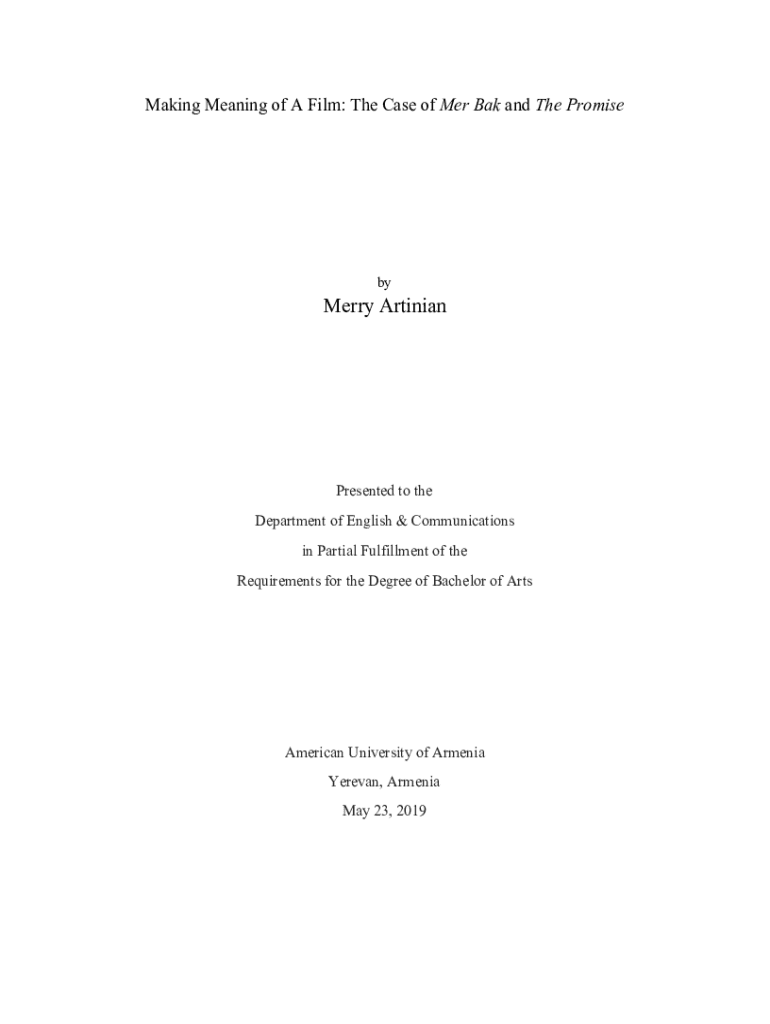 Making Meaning of A Film: The Case of MER Back and The PromisebyMerry ArtinianPresented to the Department of English & Communications in Partial Fulfillment of the Requirements for the Degree of Bachelor