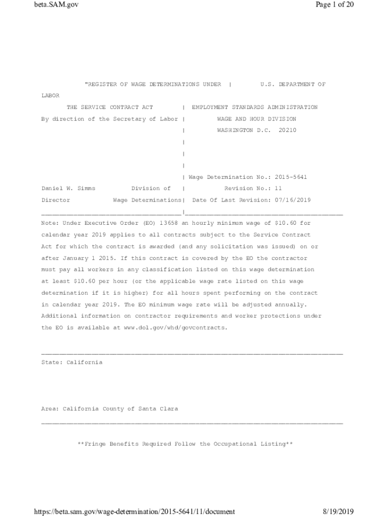 Beta.SAM.gov Page 1 of 20\” REGISTER OF WAGE DETERMINATIONS UNDER|U.S. DEPARTMENT LABOR THE SERVICE CONTRACT ACT|By direction of the Secretary of Labor | |EMPLOYMENT STANDARDS ADMINISTRATION WAGE