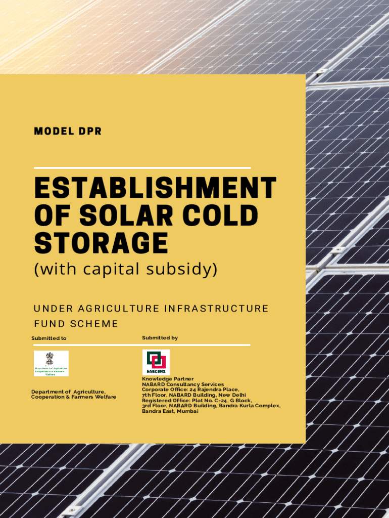 MODEL DISESTABLISHMENT OF SOLAR COLD STORAGE (with capital subsidy)UNDER AGRICULTURE INFRASTRUCTURE FUND SCHEME Submitted submitted department of Agriculture, Cooperation & Farmers WelfareKnowledge