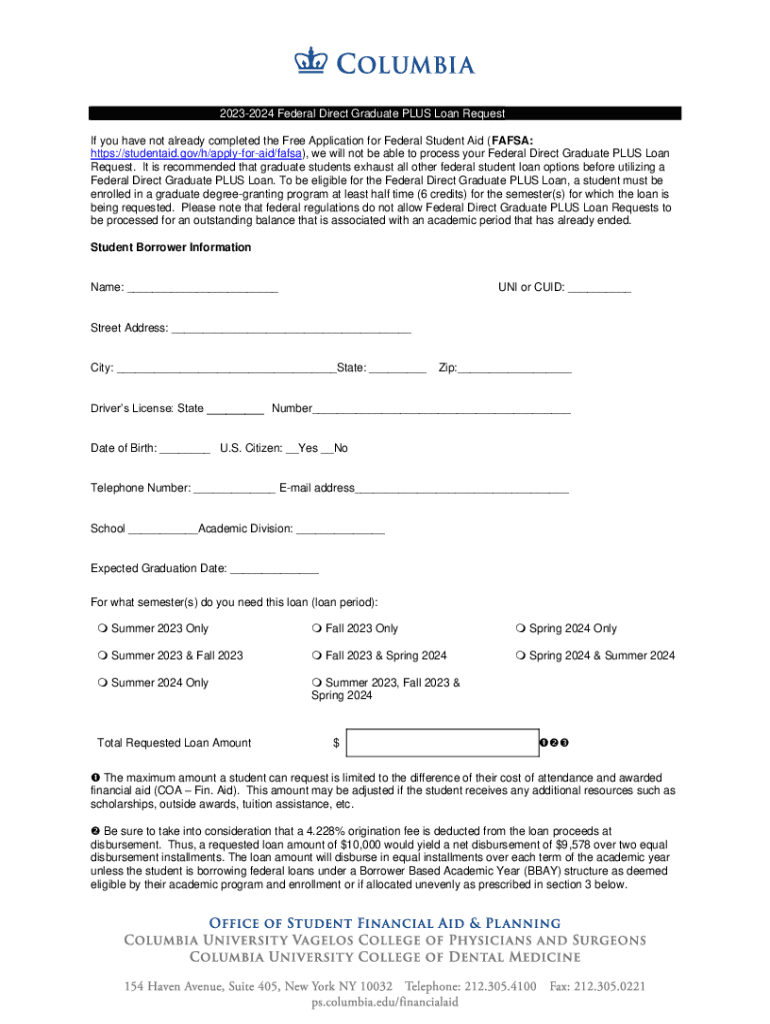 Get the free 2023-2024 Federal Direct Graduate PLUS Loan Request And Credit ...
