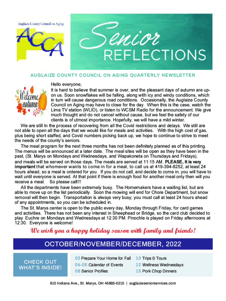 ADELAIDE COUNTY COUNCIL ON AGING QUARTERLY NEWSLETTER