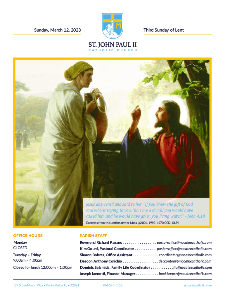 Third Sunday of Lent Sunday, March 12, 2023Jesus answered and said to her, If you knew the gift of God