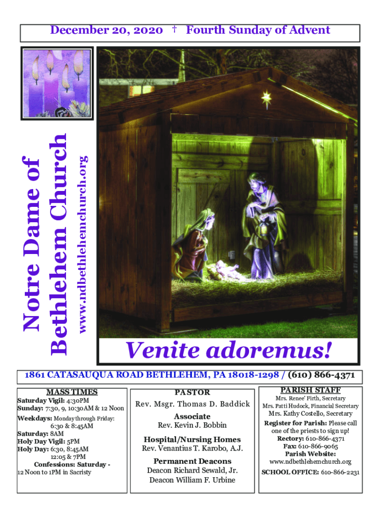 Bethlehem Church December 20, 2020, Fourth Sunday of AdventVenite adore mus!1861 CATAFALQUE ROAD BETHLEHEM, PA 180181298 / (610) 8664371