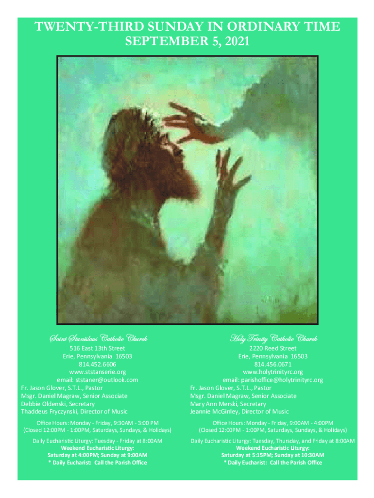 TWENTYTHIRD SUNDAY IN ORDINARY TIME SEPTEMBER 5, 2021, ft| ft’t Vt|v Vv516 East 13th Street Erie, Pennsylvania 16503 814.452.6606 www.ststanserie.org email: ststaner@outlook.com Fr. Jason Glover,