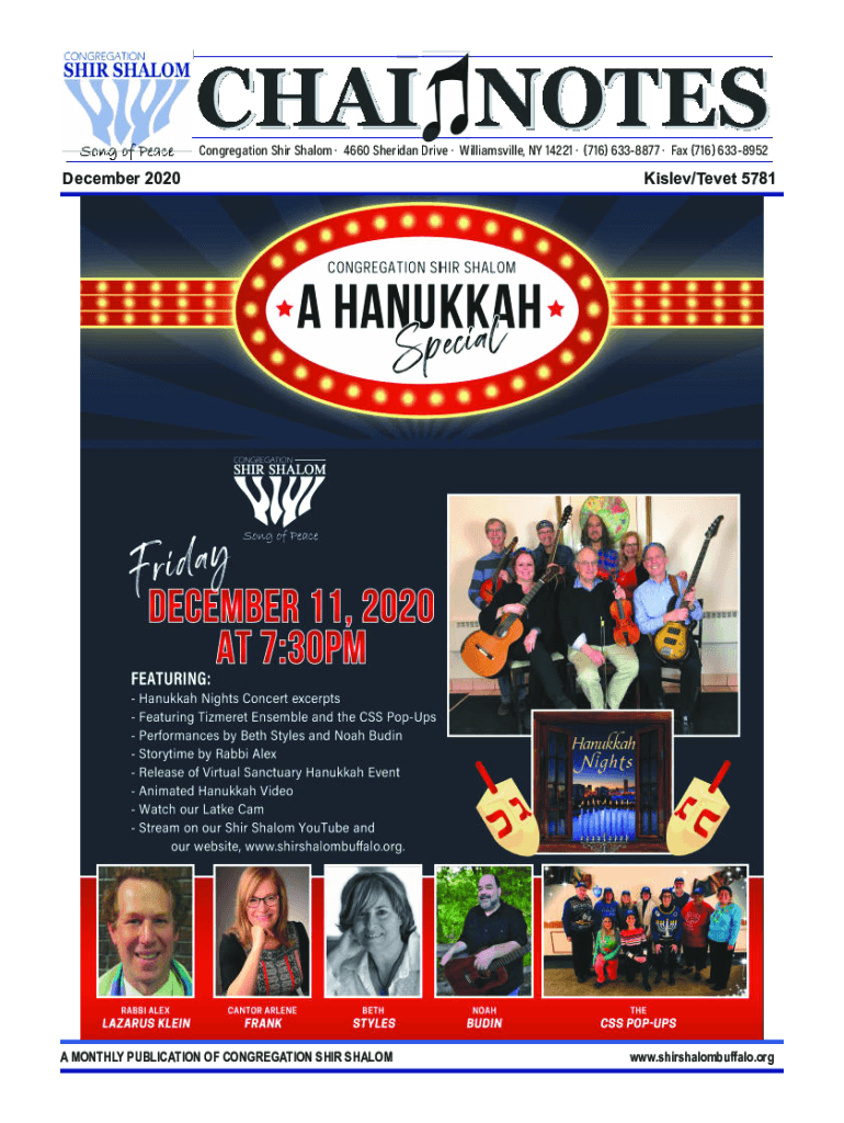Congregation Sir Shalom 4660 Sheridan Drive Williamsville, NY 14221 (716) 6338877 Fax (716) 6338952December 2020A MONTHLY PUBLICATION OF CONGREGATION SIR SHALOM Kislev/Tevet 5781www.shirshalombuffalo.organic