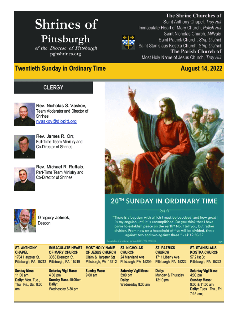 Shrines ofPittsburghof the Diocese of Pittsburgh shrines.writhe Shrine Churches of Saint Anthony Chapel, Troy Hill Immaculate Heart of Mary Church, Polish Hill Saint Nicholas Church, Mill vale Saint