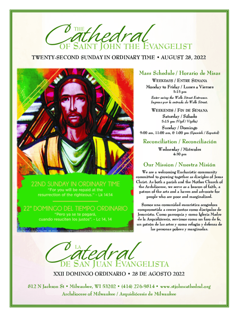 THEOFSAINT JOHN THE EVANGELISTTWENTYSECOND SUNDAY IN ORDINARY TIME AUGUST 28, 2022Mass Schedule / Horatio de Misas