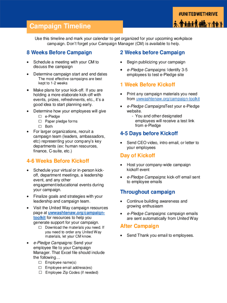 Edit your sample campaign timelinecampaign toolkit form online