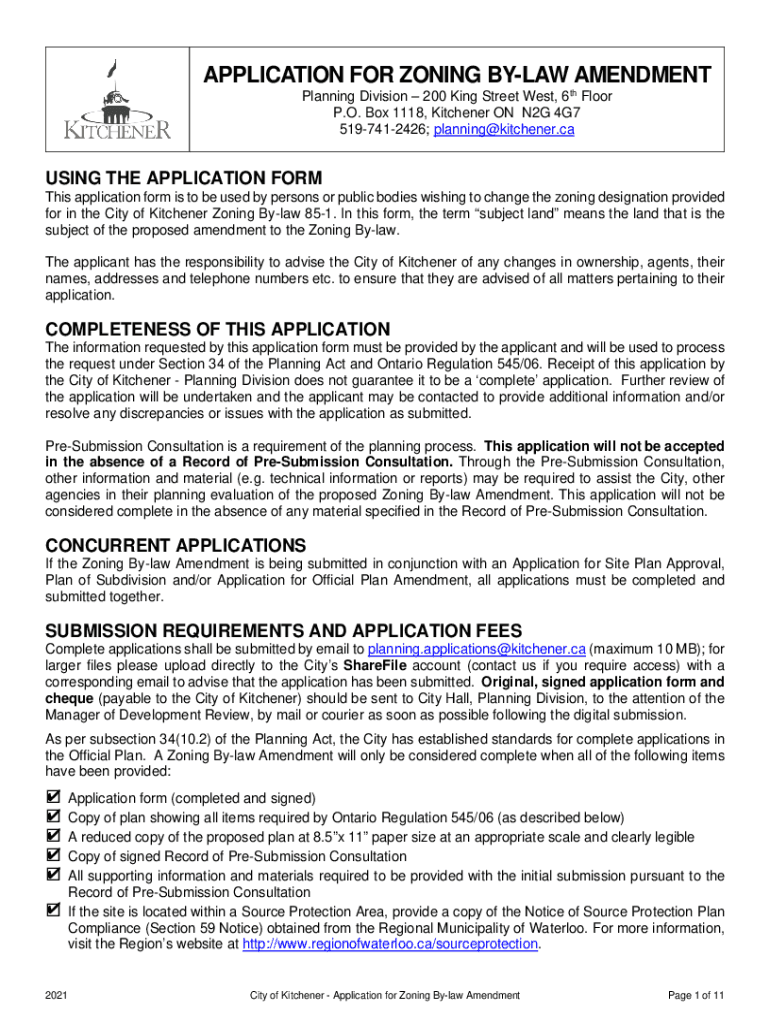 APPLICATION FOR ZONING BYLAW AMENDMENT Planning Division 200 King Street West, 6th Floor P.O. Box 1118, Kitchener ON N2G 4G7 5197412426; planning@kitchener.caUSING THE APPLICATION FORM This application