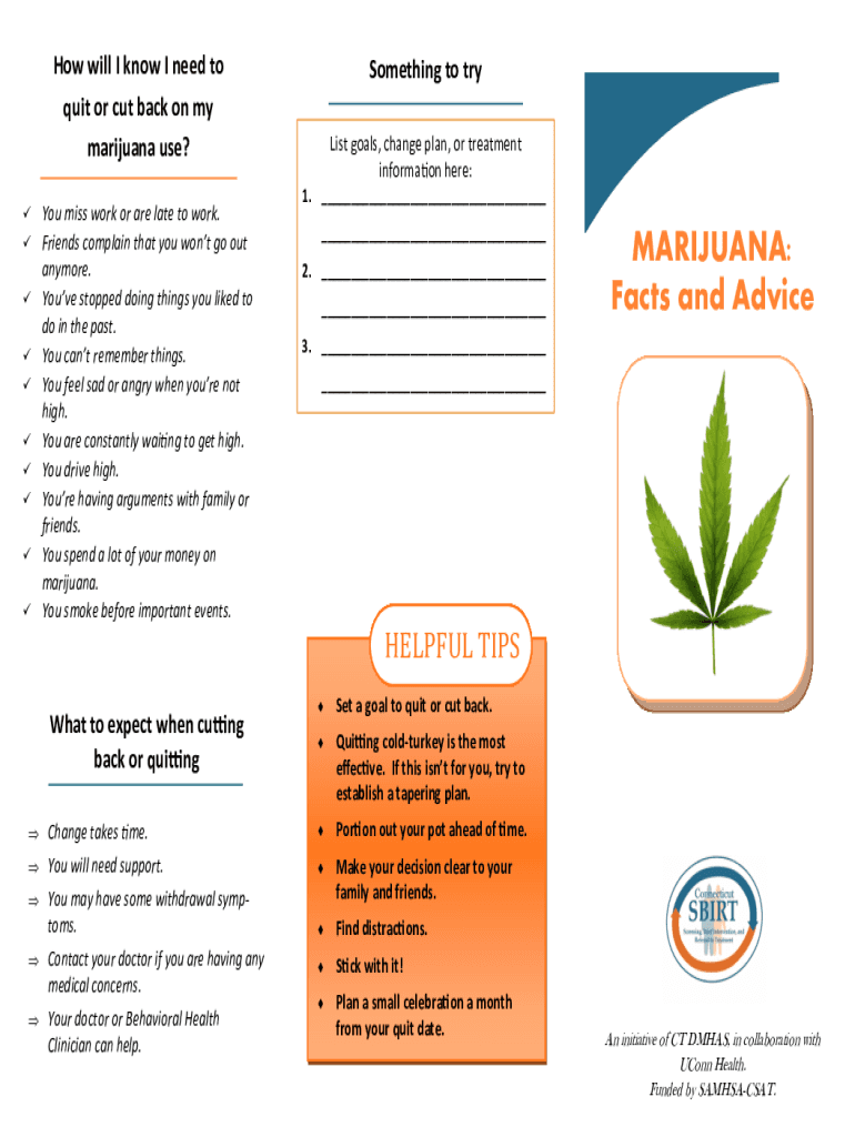 How will I know I need to quit or cut back on my marijuana use? You miss work or are late to work. Friends complain that you won't go out anymore. You've stopped doing things you liked to do in the