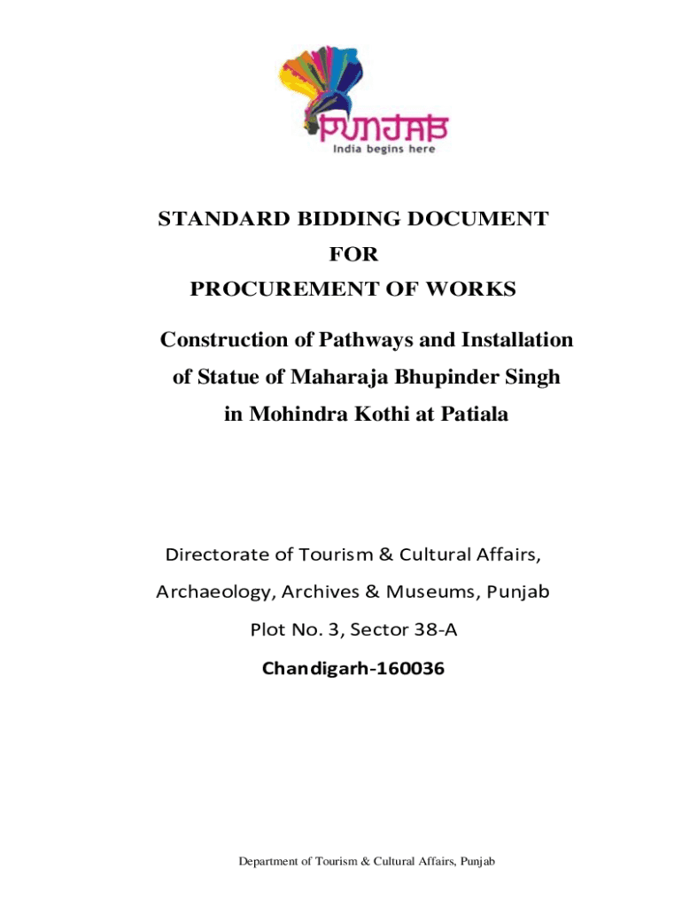 STANDARD BIDDING DOCUMENT FOR PROCUREMENT OF WORKSConstruction of Pathways and Installation of Statue of Maharajah Builder Singh in Mahindra Both at PatialaDirectorate of Tourism & Cultural Affairs,