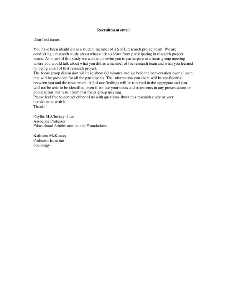 Recruitment email Dear first name, You have been identified as a student member of a Soil research project team. We are conducting a research study about what students learn from participating in