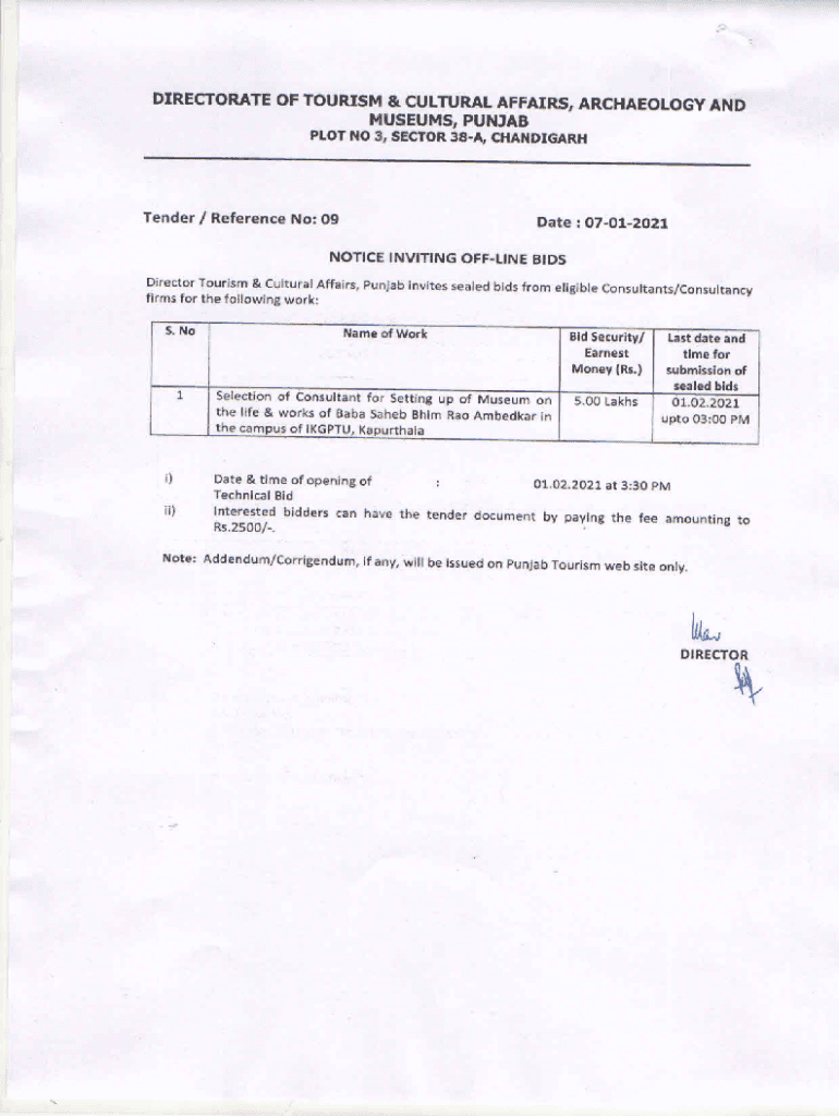 Request For Proposal for Selection of Consultant for Setting up of Museum on the life & works of Baba Sahib Him Ran Amber in the campus of KEPT, KapurthalaIssued by The Director, Department of Tourism
