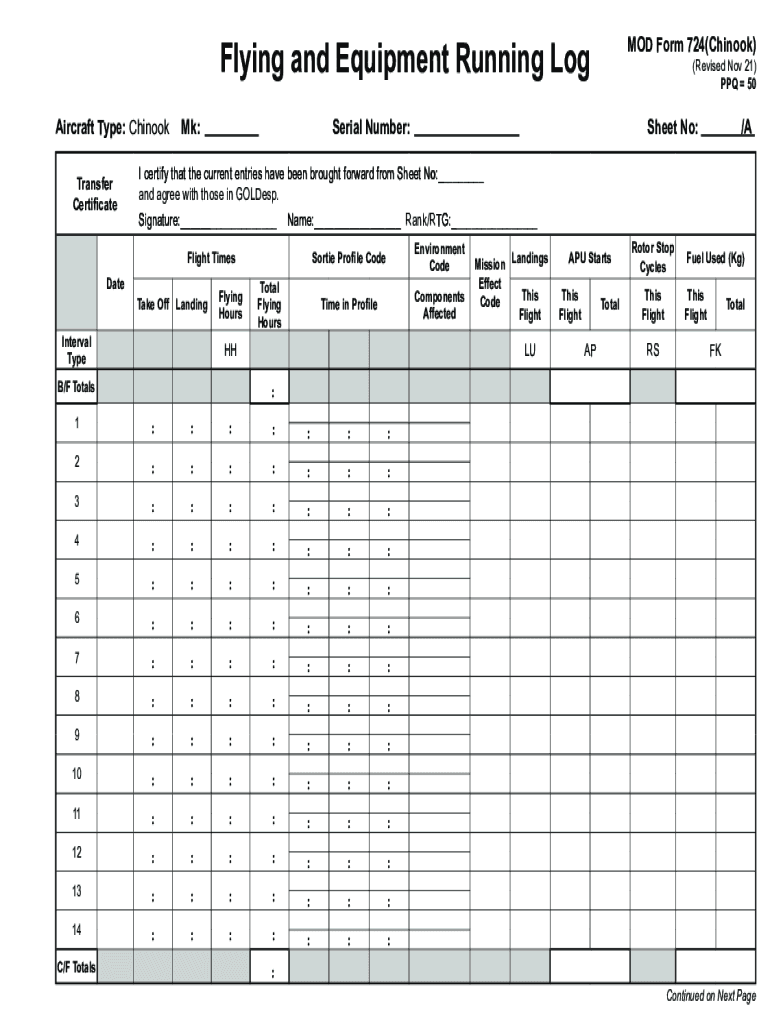 Flying and Equipment Running Log