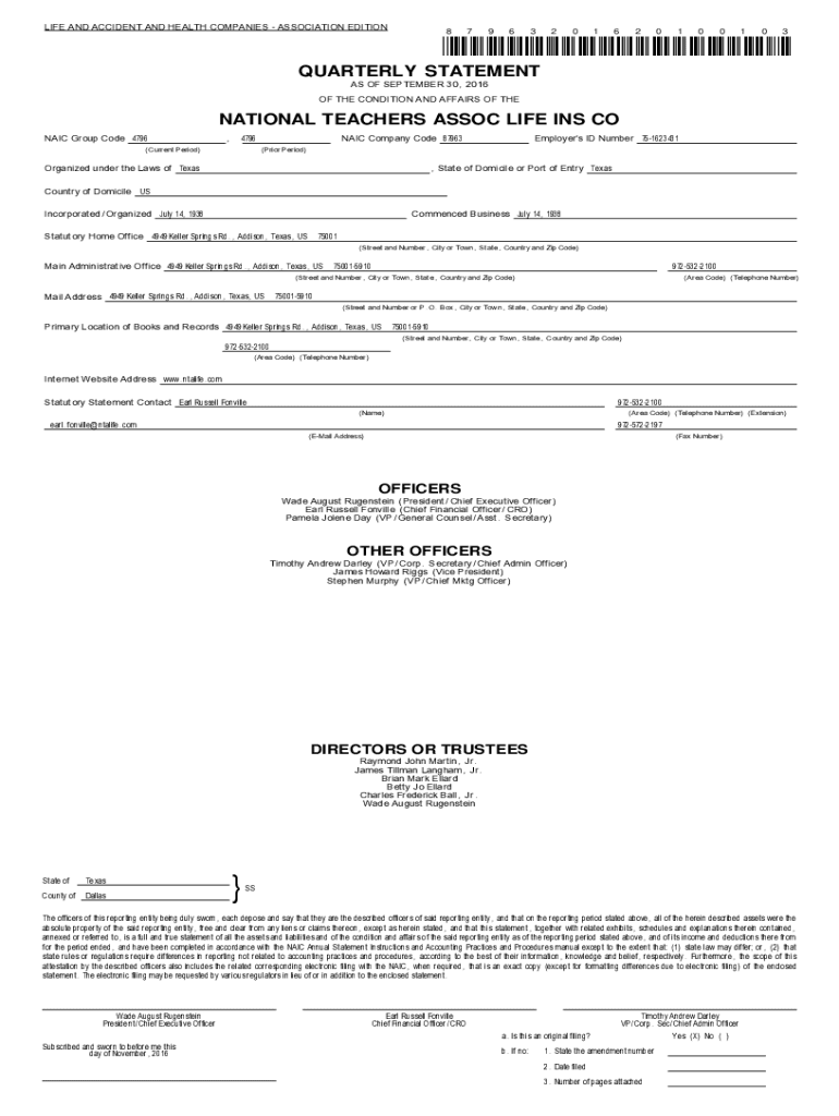 Get the free NATIONAL TEACHERS ASSOC LIFE INS CO