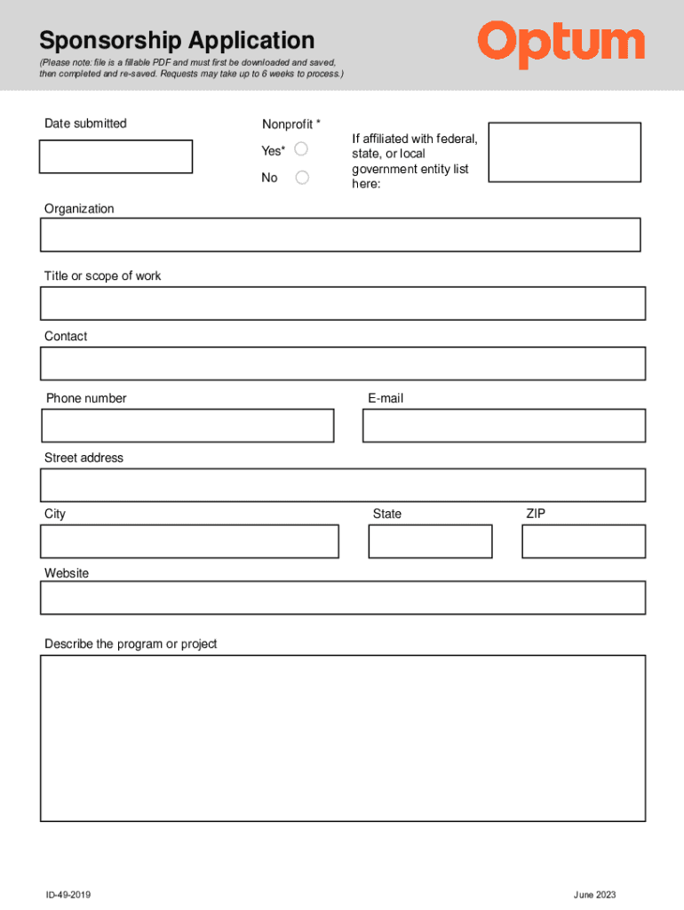 Obtain the optum sponsorship request form from the official website or requesting it from optum directly.