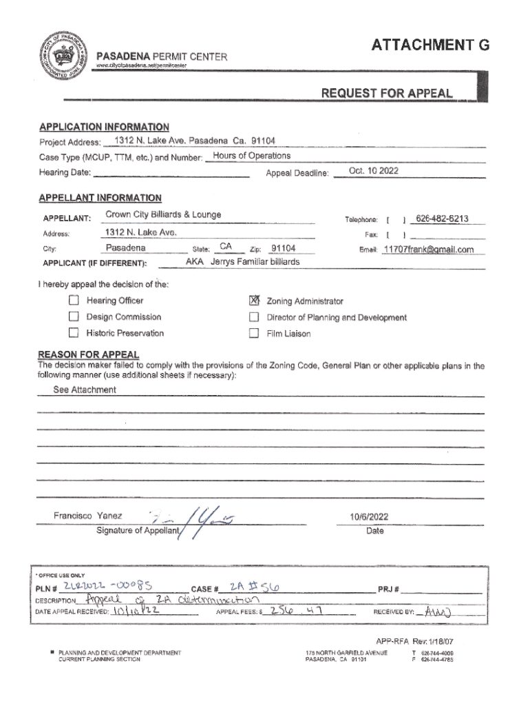 RMS.cityotpasadena.net\'penniteentorREQUEST FOR APPEAL1APPLICATION INFORMATION