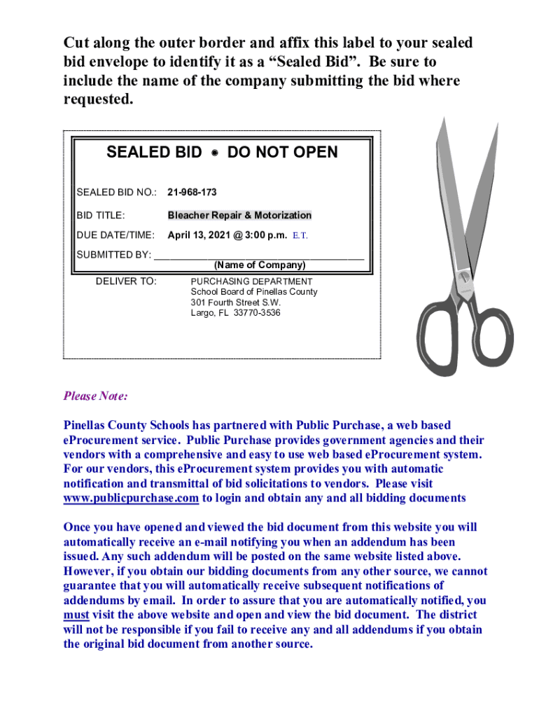 Cut along the outer border and affix this label to your sealed bid envelope to identify it as a Sealed Bid. Be sure to include the name of the company submitting the bid where requested. SEALED BID