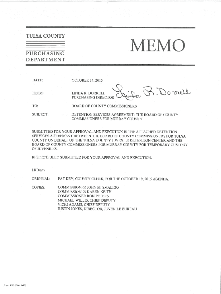 PURCHASING DIRECTOR TO:BOARD OF COUNTY COMMISSIONERSSUBJECT:DETENTION SERVICES AGREEMENT THE BOARD OF COUNTY