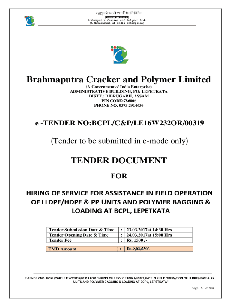 (A Government of India Enterprise)Brahmaputra Cracker and Polymer Limited