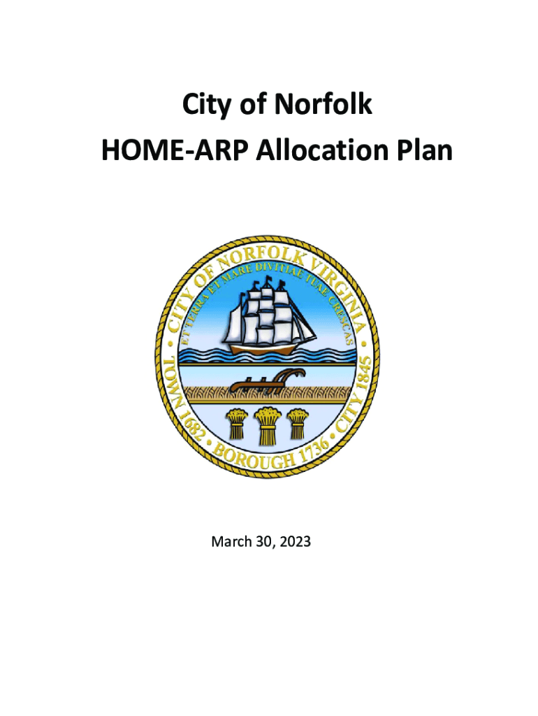 City of Norfolk HOME ARP Allocation Plan March 30, 2023Acknowledgements City Council Honorable Kenneth C. Alexander, Ph.D. Mayor Honorable Martin A. Thomas, Jr. Vice Mayor, Ward 1 Honorable Courtney