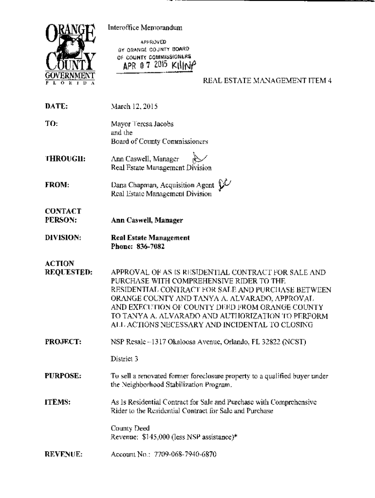 REAL ESTATE MANAGEMENT ITEM 4DATE:March 12,2015TO:Mayor Teresa Jacobs